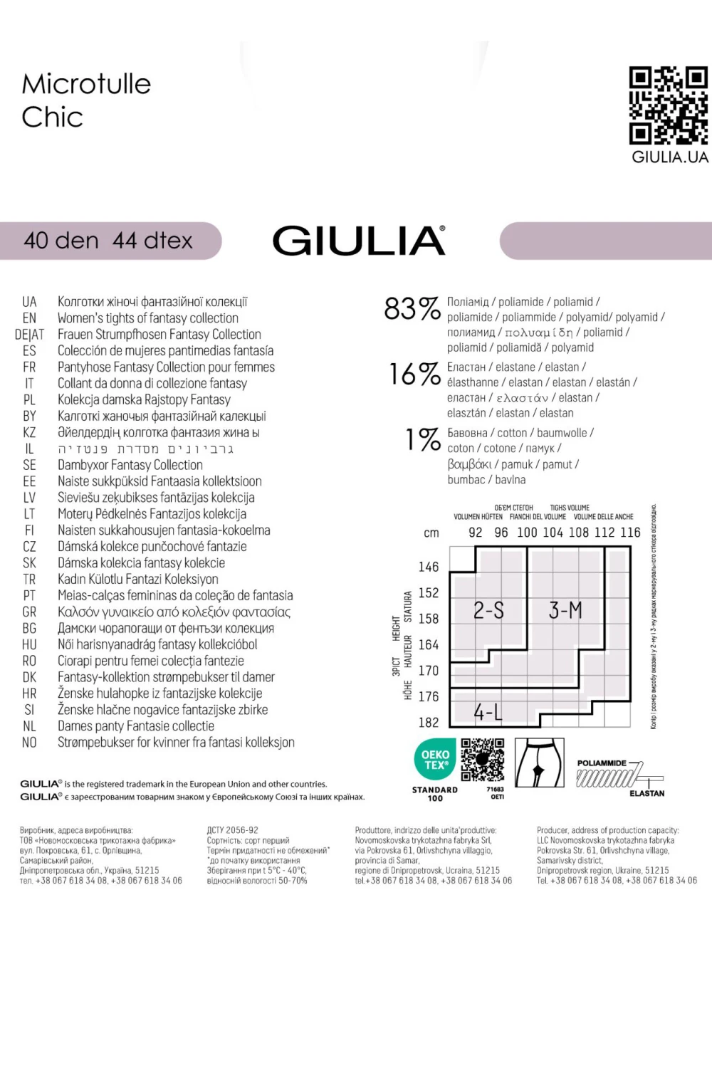 Изначально ТМ Giulia выпускала недорогие классические колготы, отдавая приоритет низкой стоимости изделий. Со временем, повзрослев вместе со своим потребителем, внутренняя философия бренда изменилась – главным стал баланс между достойным качеством и доступной стоимостью. Поэтому хоть колготки Джулиа производятся и в Украине, но на идеально отлаженном, автоматизированном итальянском оборудовании – едва ли, не зная правды, их можно отличить от лучших образцов made in Italy.