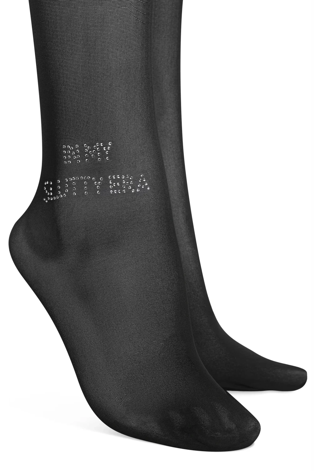 Колготки Obsessive – это манифест женской смелости и чувственности, нежно облегающие тело. Надпись IN MY SLUTTY ERA на лодыжке становится символом уверенности в себе – без ограничений и с полным осознанием собственных желаний.