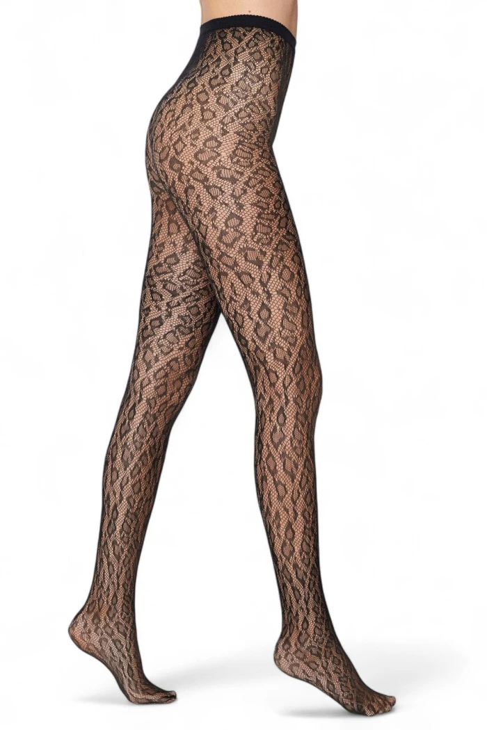 Эксклюзивные бесшовные колготки в сетку украшены леопардовым принтом .