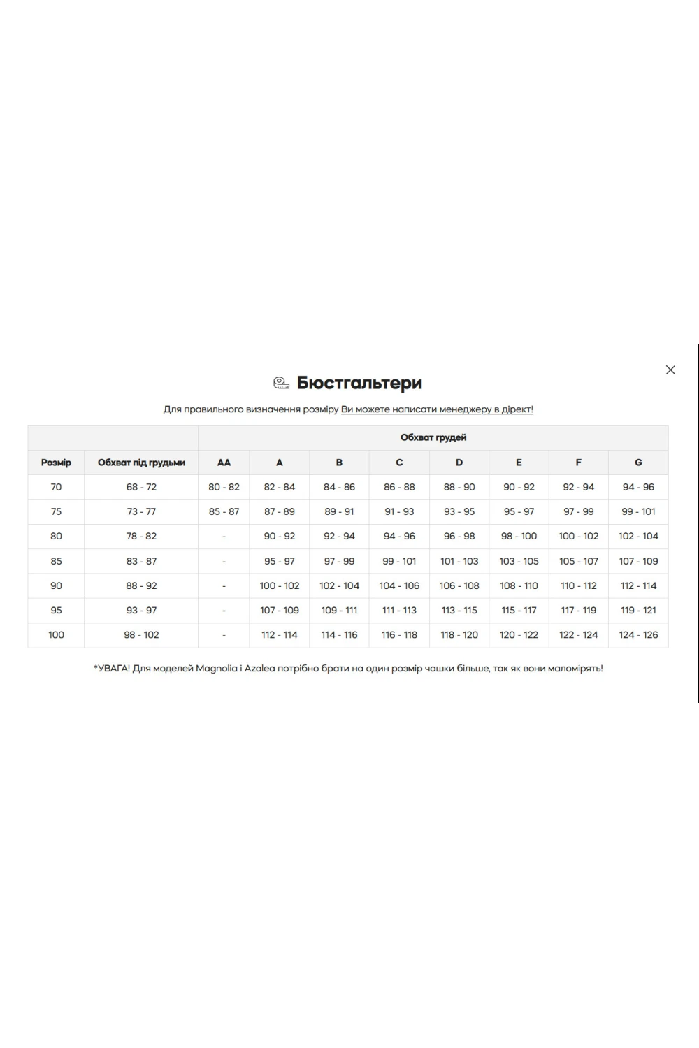 - Тип бюстгальтера
