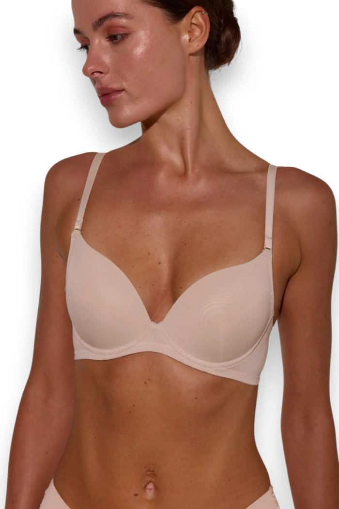 Бюстгальтер Viola с двойным push-up формирует красивую посадку груди, поднимая ее максимально к центру и вверх. Фигурный край бюстгальтера не деформируется в процессе ношения, сохраняя идеальную посадку благодаря специальной технологии кроя.