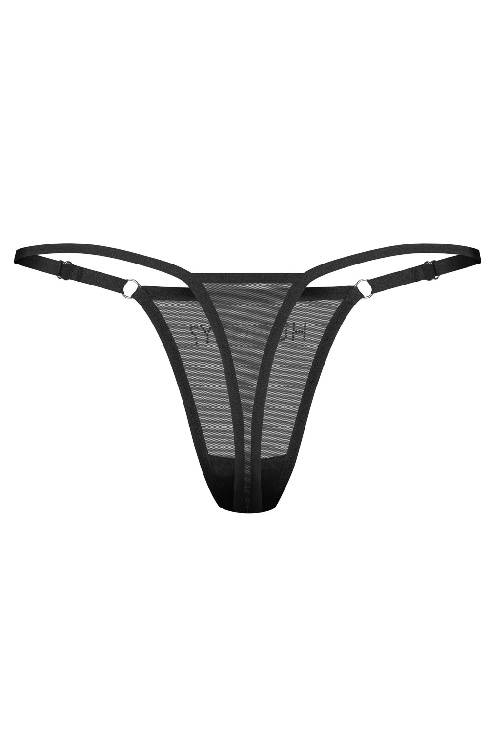 Прозрачные сетчатые стринги с блестящей надписью "Fuck Me" Obsessive Violami – смелый выбор для женщин, которые любят флиртовать и играть со словами. Надпись воспламеняет чувства с самого первого взгляда.