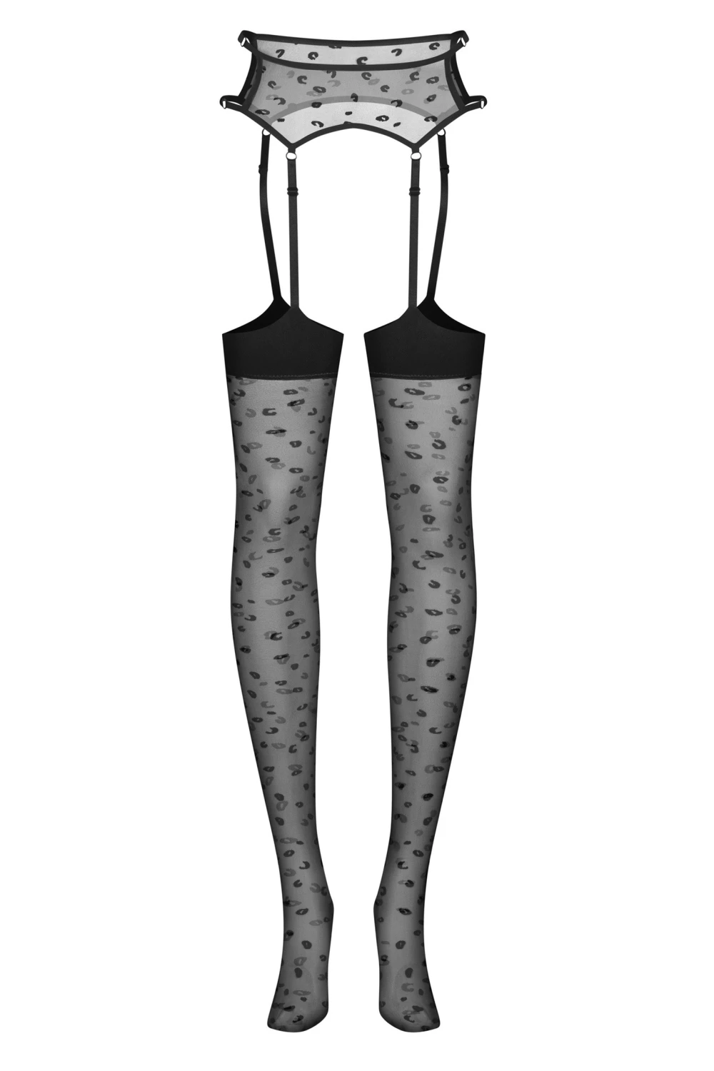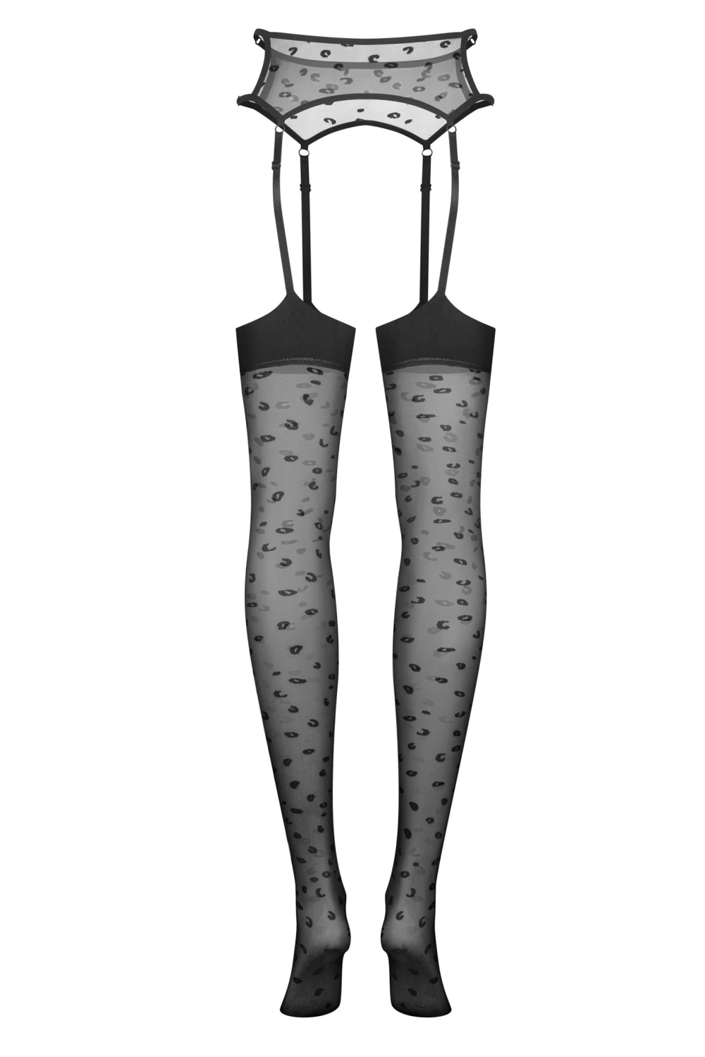 Чувственный и совершенно захватывающий пояс с чулками от Obsessive. Комплект Isinne сочетает легкость с дерзким характером. Нежный, полупрозрачный материал, украшенный чувственным принтом, создает эффект разжигающий воображение. Идеальный вариант для женщин, любящих удивлять чем-то необычным.