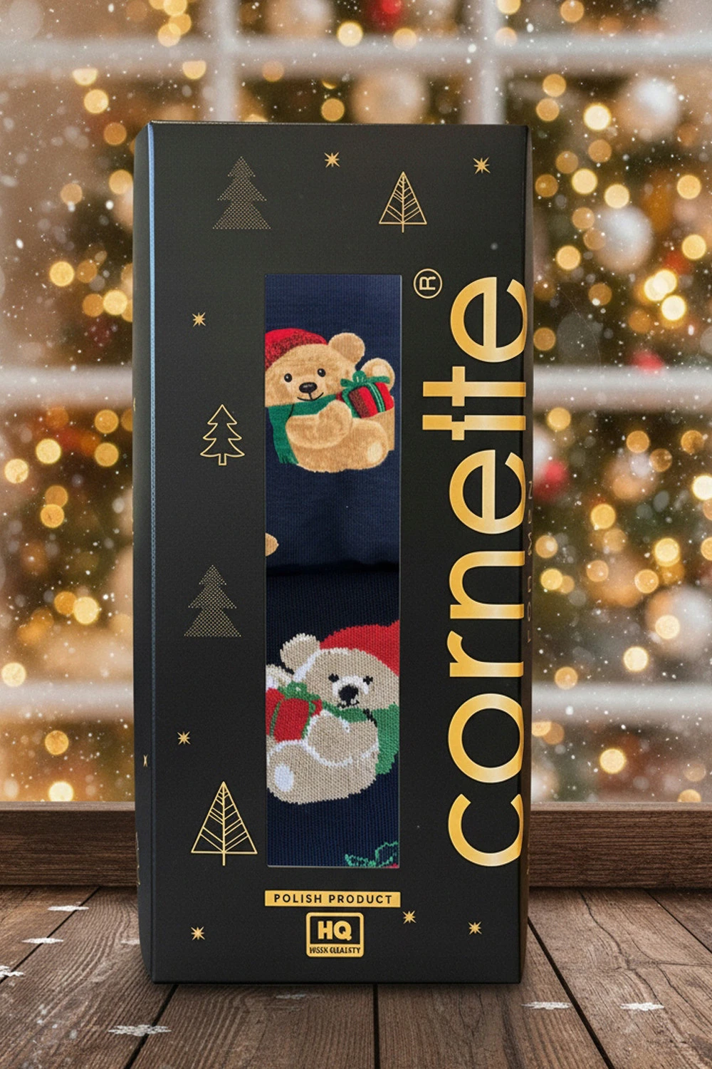 Набір подарунковий - Чоловічі труси боксери та шкарпетки від Cornette із високоякісної бавовни з веселим новорічним принтом.