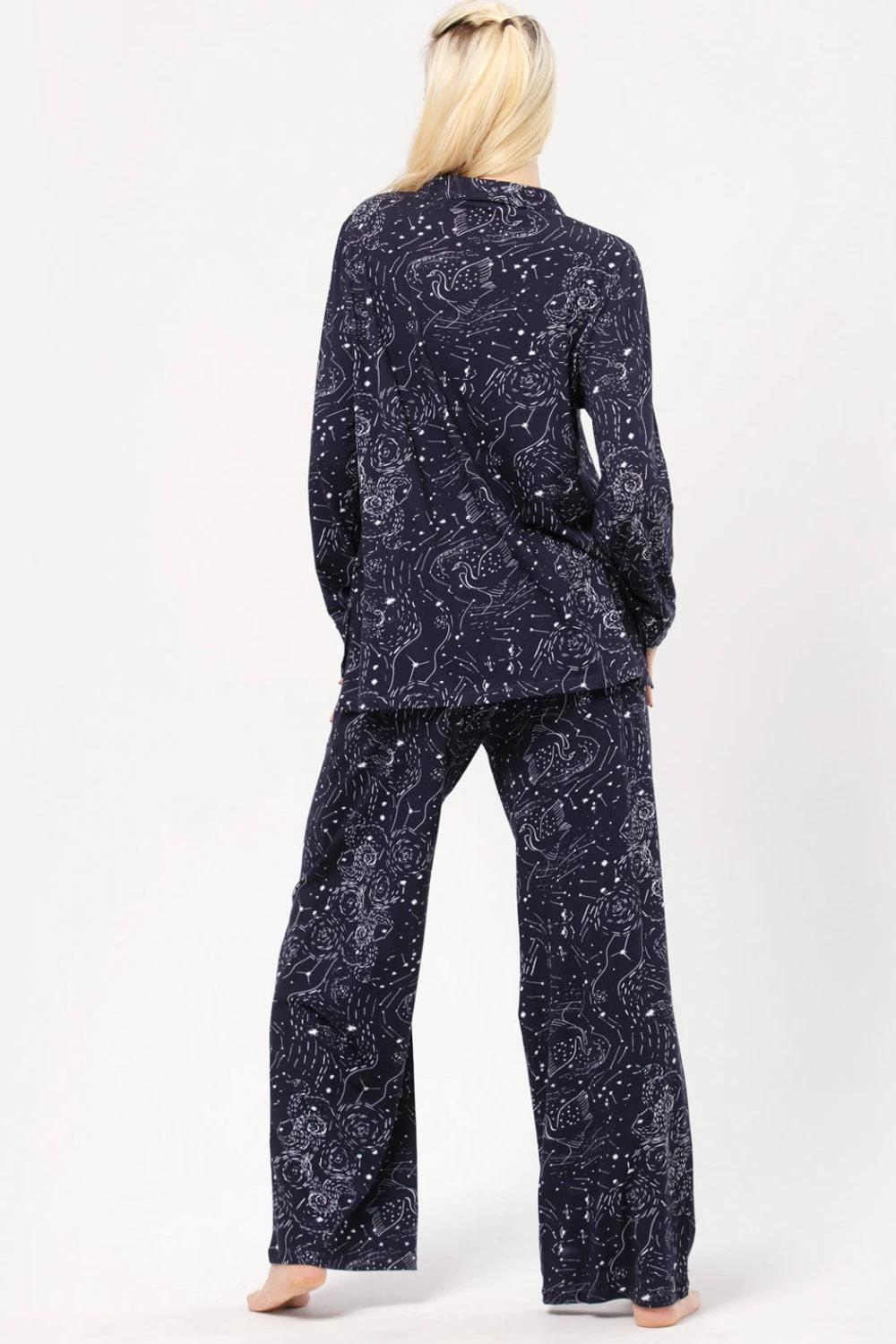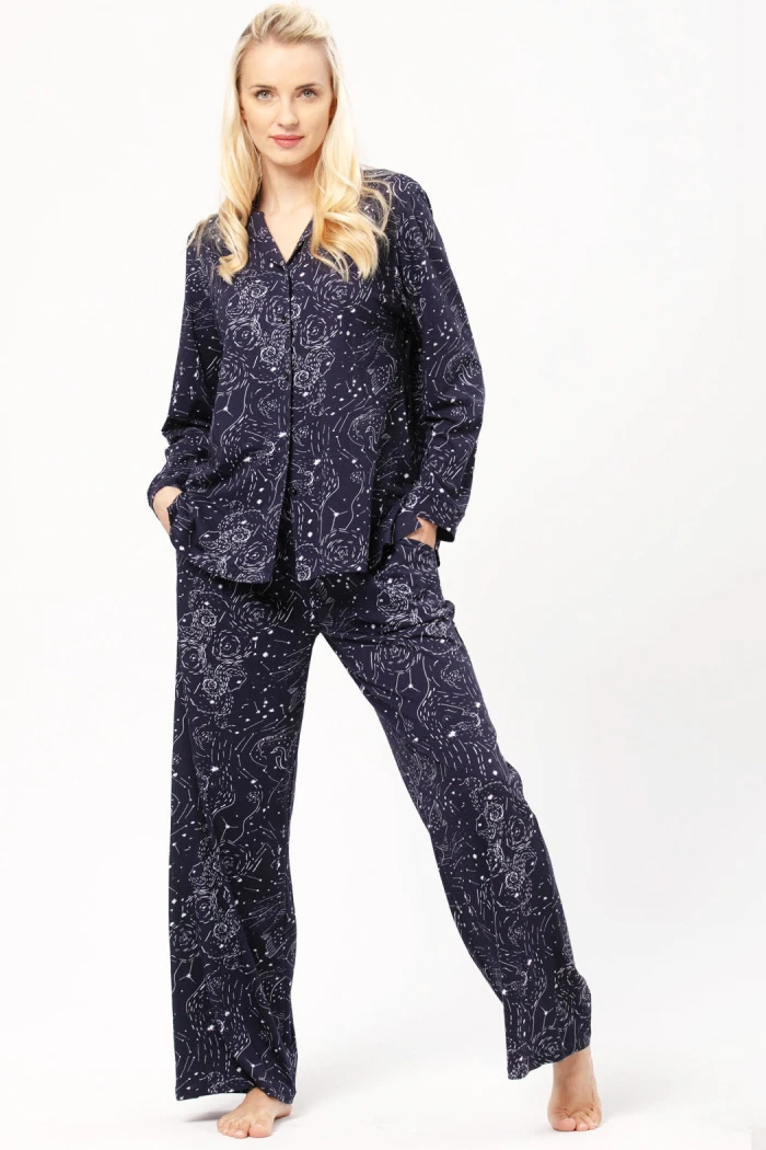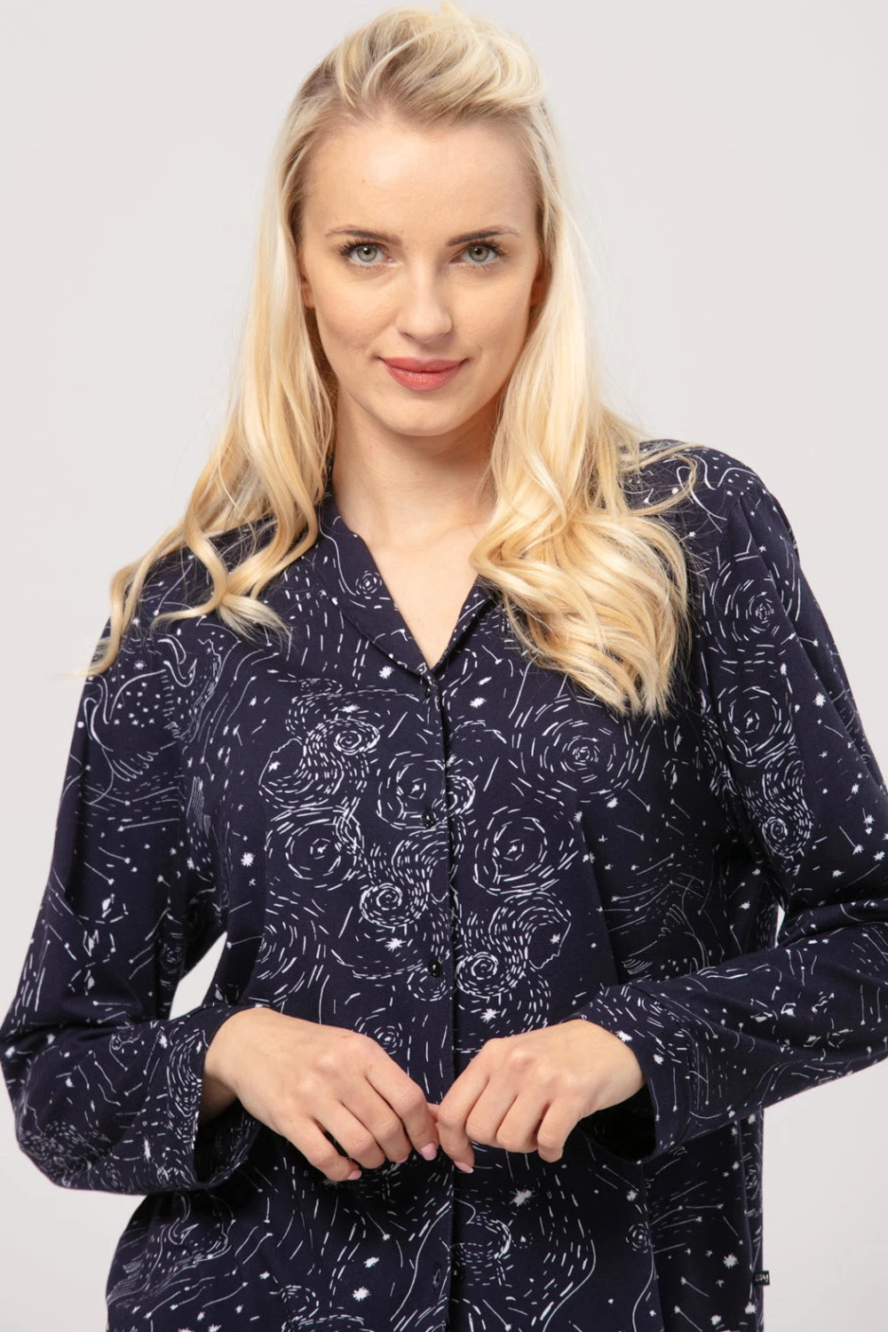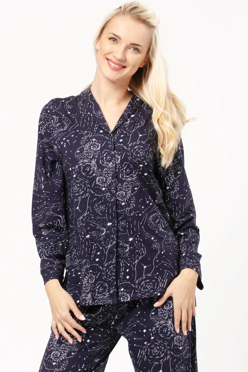 Вільна бавовняна піжама з сорочкою на ґудзиках Key із візерунком зоряного неба. Комфортний і універсальний комплект для дому та сну.