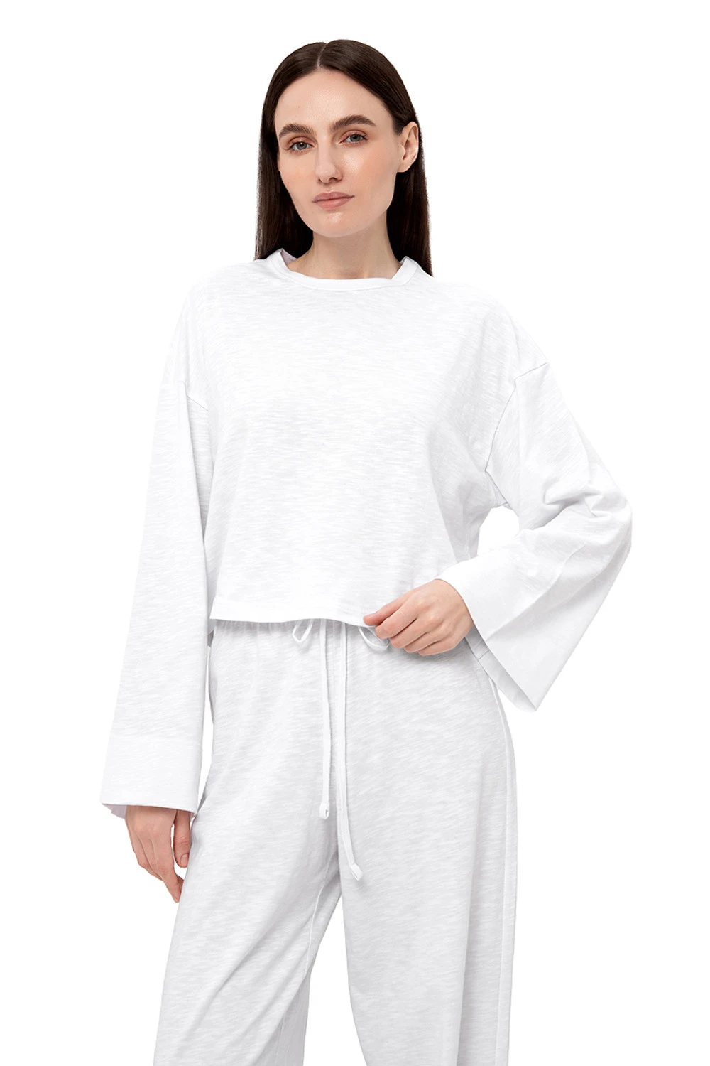 - Лонгслів вільний, вкорочений, з широким рукавом.