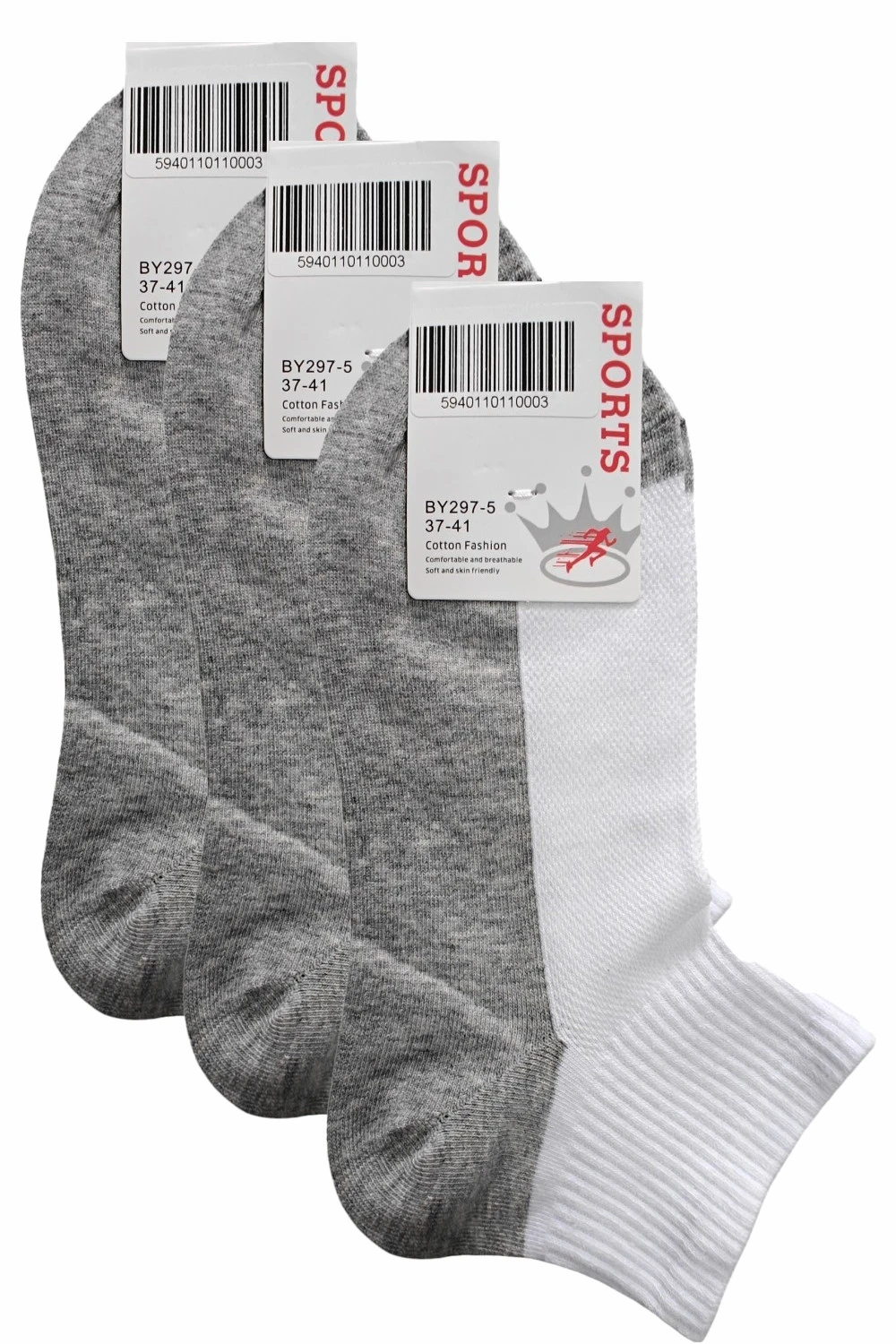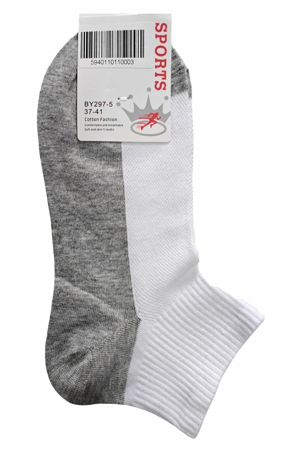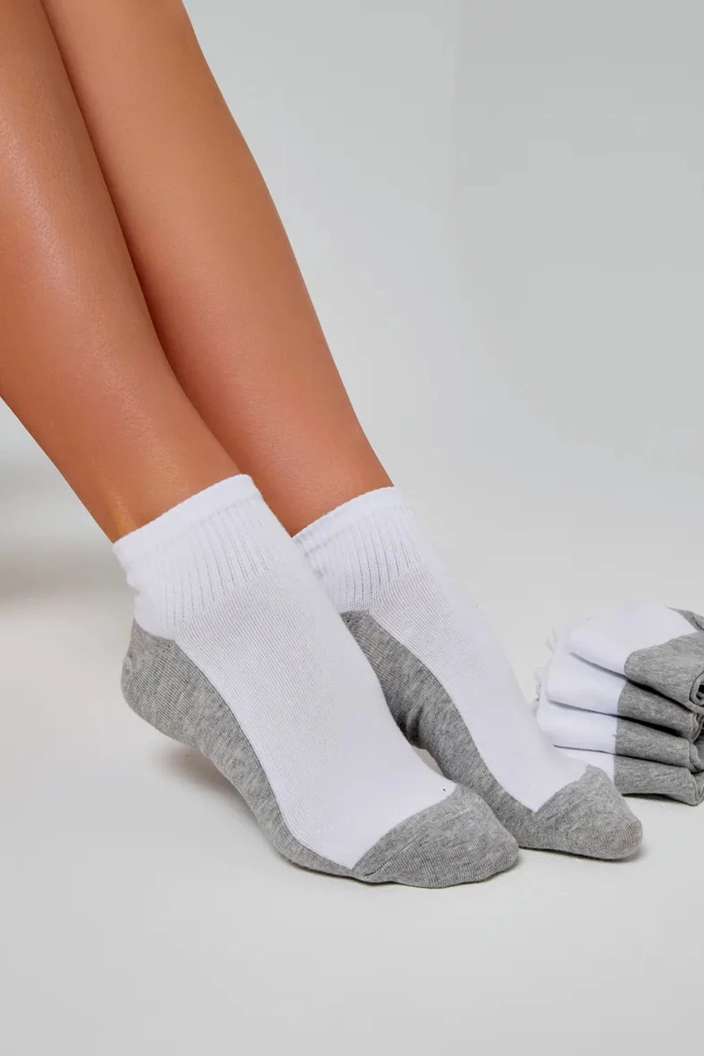 Комфортні короткі шкарпетки в сіточку з сірою ступнею - практична модель для низького взуття.