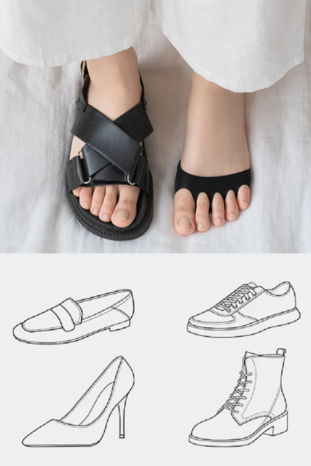 - Універсальні для різного взуття, можна носити, наприклад, коли ви на високих підборах, в кросівках, чоботах, лоферах тощо.