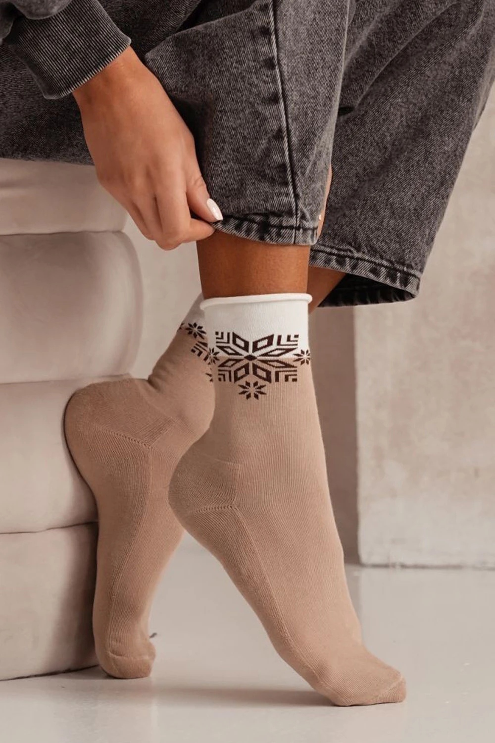 Жіночі теплі напівмахрові (утеплена стопа) шкарпетки Milena класичної довжини без стискаючої резинки і стильним принтом.