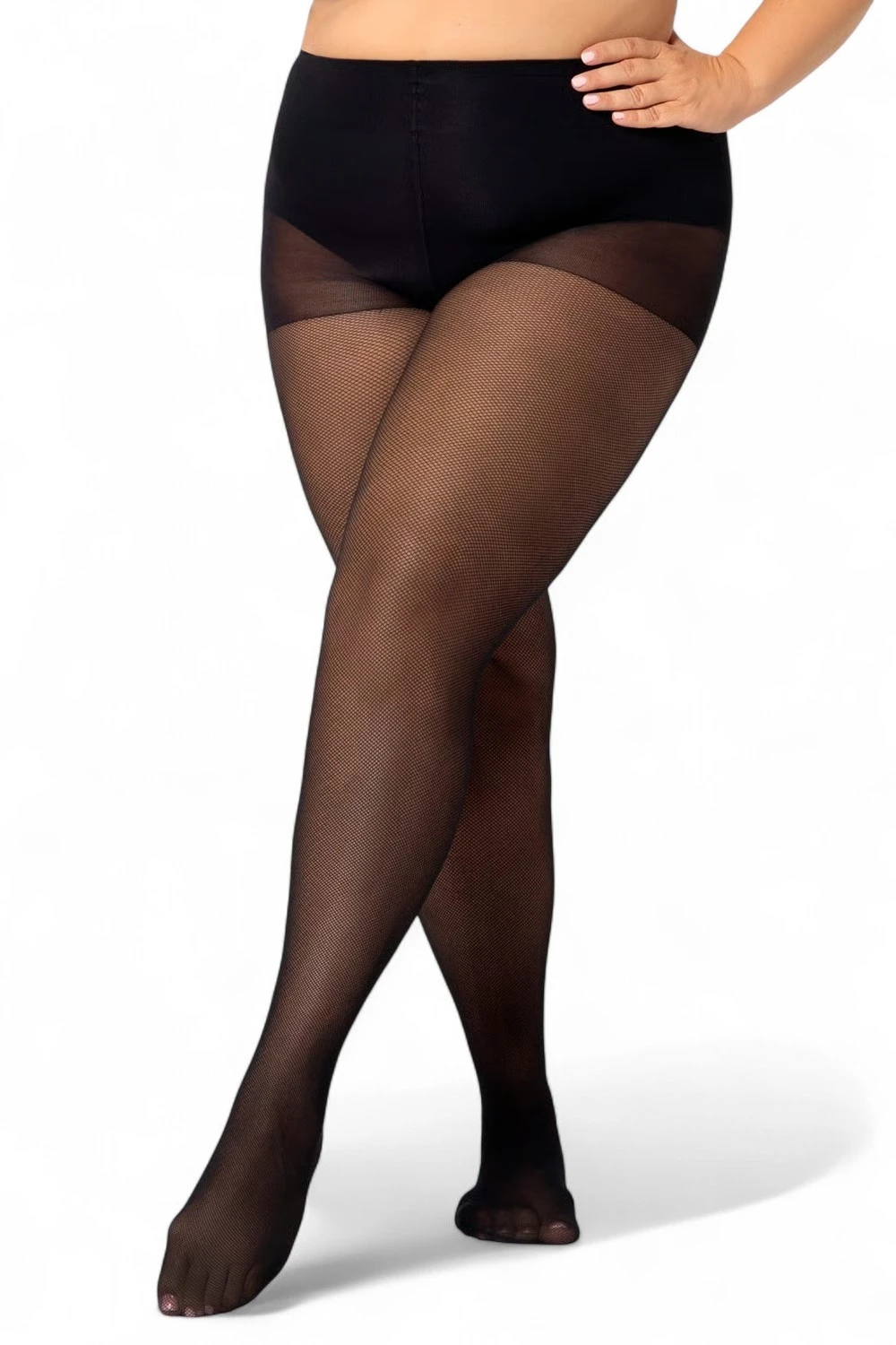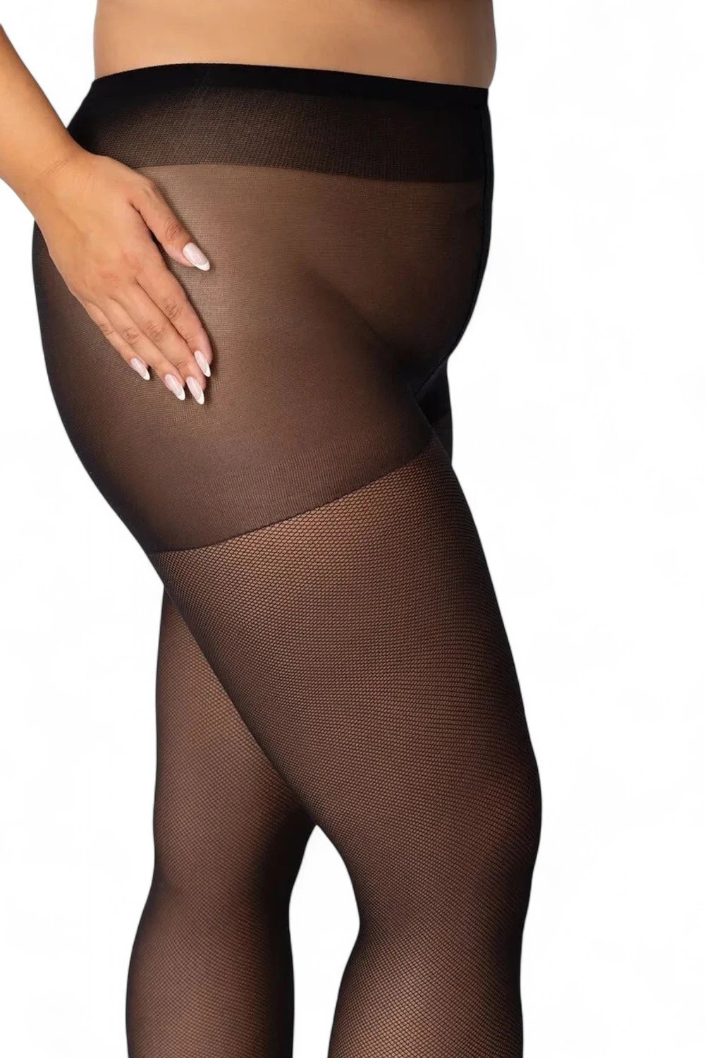 Матові жіночі колготки великого розміру від Mona із жакардовим плетінням практично невідчутні на ніжках, а ущільнені шортики подарують комфорт.