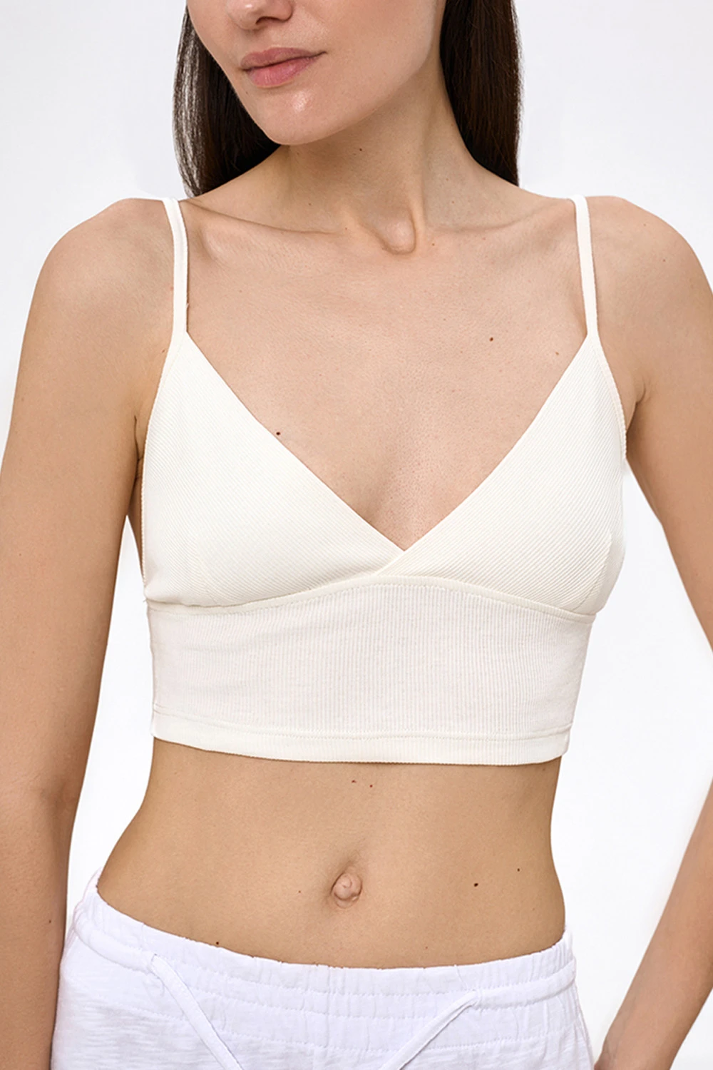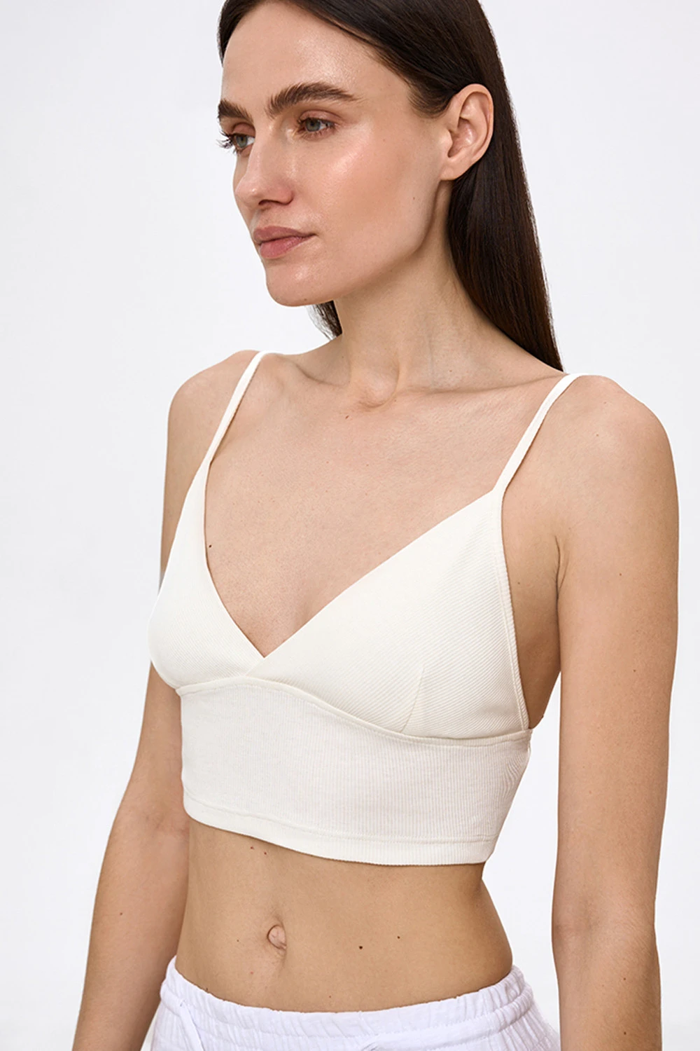 Короткий топ в рубчик приталеного силуету з трикутними чашечками на бретелях від Luna.