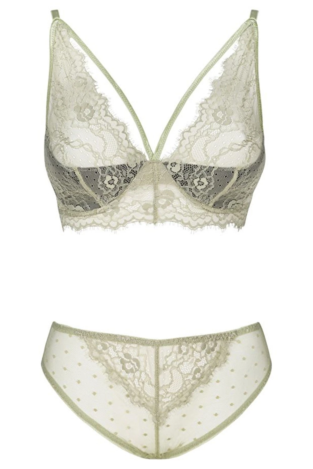 - Виконаний з ніжного мережива в поєднанні з повітряним тюлем.