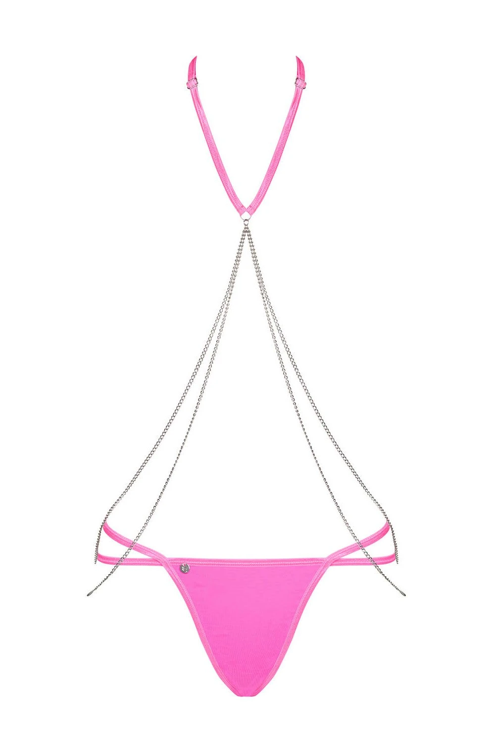 Чергова порція задоволення від Obsessive! Колекція Chainty захоплює прекрасними деталями - надзвичайно насиченим неоново-рожевим кольором, спокусливими еластичними бретельками, ланцюжками і міні-трусиками з приємного гладкого матеріалу!
