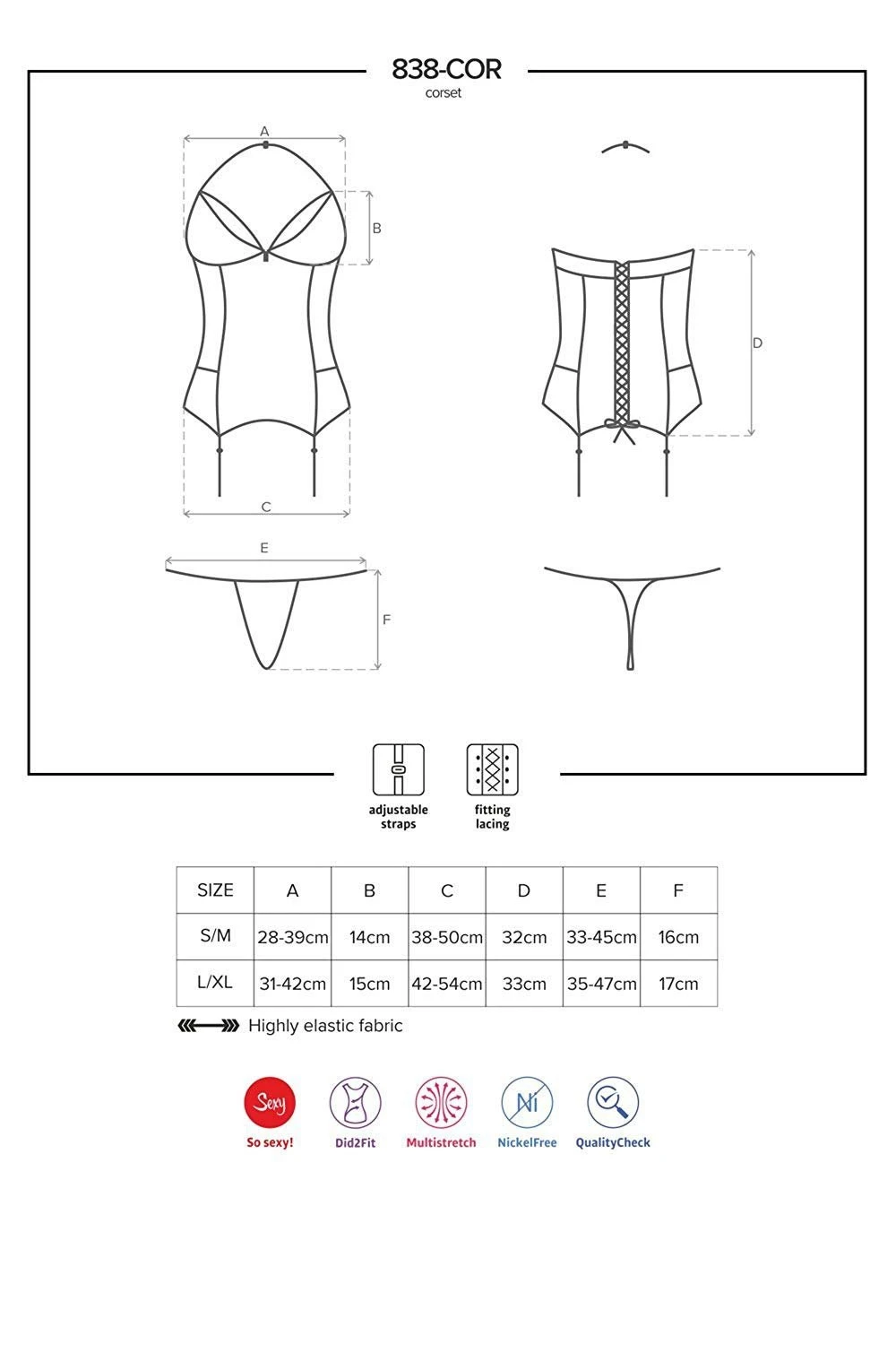 Ніжна сітка, чарівне мереживо, грайливі прикраси і кокетлива шнурівка - це корсет Obsessive, який виглядає абсолютно ідеально і фантастично! Він сформує гарний силует з акцентом на талію і зону декольте.
