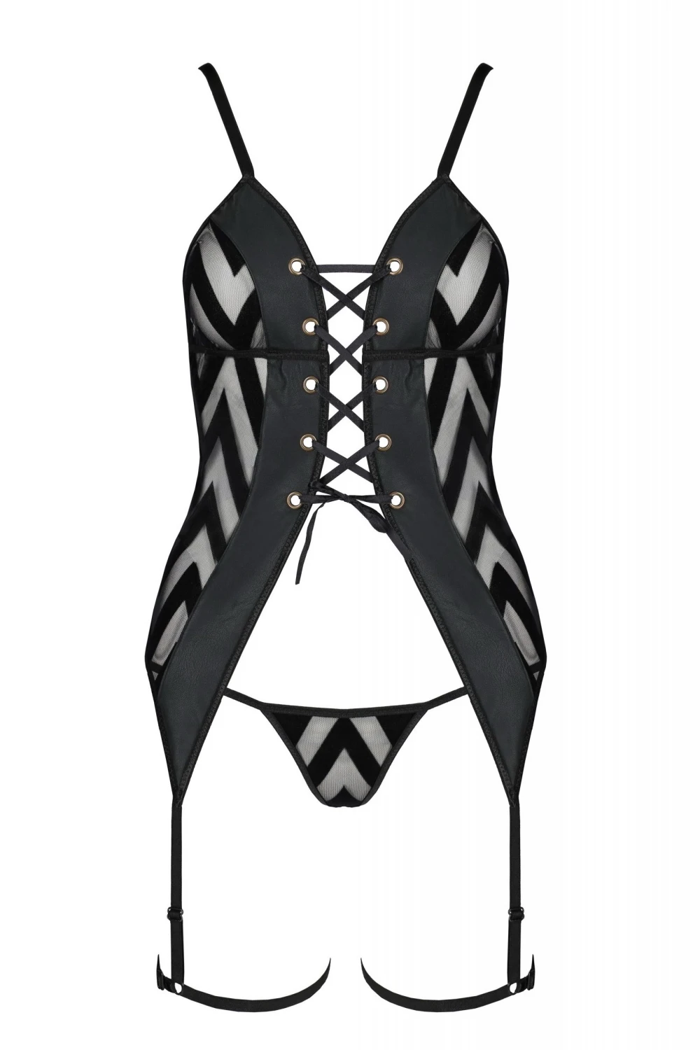 - Вузькі бретелі, та гартери регулються по довжині.