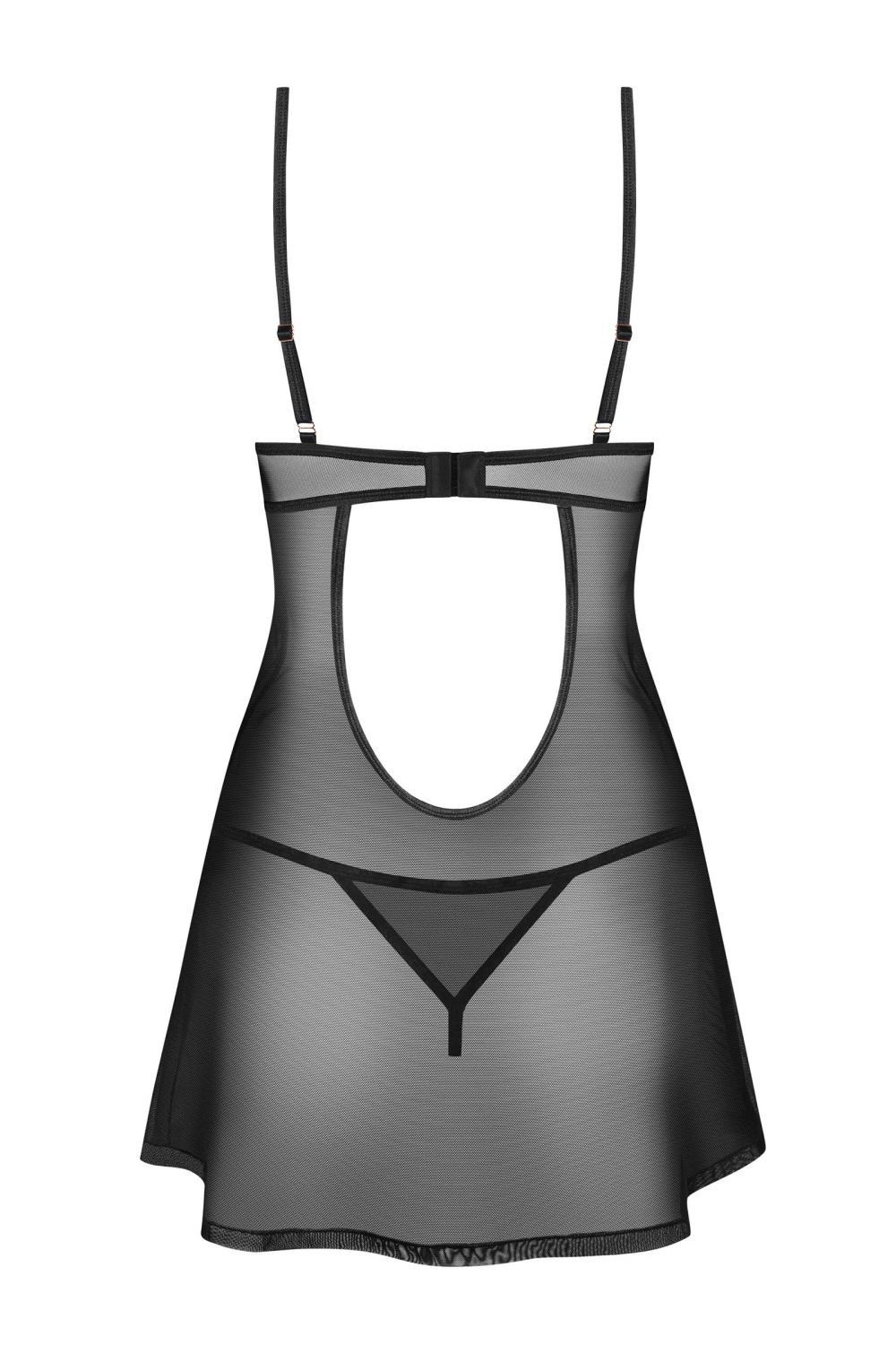 Сорочка Euridia– це поєднання елегантності та спокуси. Ніжні сітчасті деталі та вертикальні смужки на грудях підкреслюють жіночні форми, а оригінальний крій сексуально підкреслить спинку і сідниці ... Декоративні кільця над грудьми привертають увагу, а прозора тканина додає нотку таємничості.