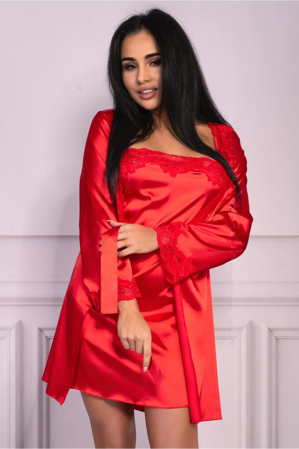 Що може бути важливіше для жінки, ніж виглядати красиво в будь-який момент? Елегантний комплект складається з халата і сорочки Jacqueline інтригуючого червоного кольору подарує таку можливість.